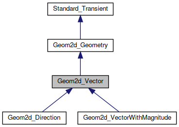 The abstract class Vector describes the common behavior of vectors in 2D space. The Geom2d package provides two concrete classes of vectors: Geom2d_Direction (unit vector) and Geom2d_VectorWithMagnitude.