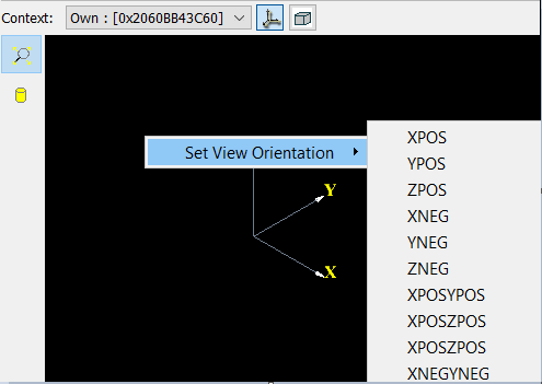 | Set View Orientation | Shows the list of available V3d_View projections. Selection of an item with change the view. |