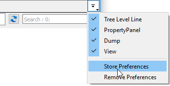 | Tree Level Line, PropertyPanel, PropertyPanel (custom), Dump, View | Names of dock widgets in the active plugin. If the button is checked, dock widget is visible. |
