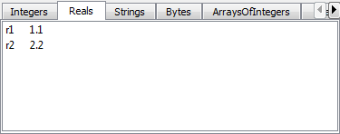 | TDataStd_BooleanArray, TDataStd_ByteArray, other Array type attributes | 2 controls: - a table of [array bound, value], - a table of [method name, value] |