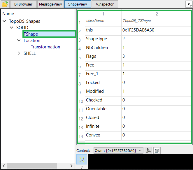 | ShapeView | Modeling Data | TopoDS_Shape |