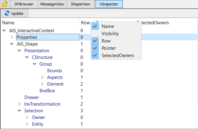 | VInspector | Visualization | AIS_InteractiveContext |