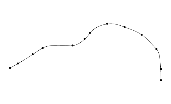 The resulting BSpline curve will be C2 or second degree continuous, except where a tangency constraint is defined on a point, through which the curve passes. In this case, it will be only C1 continuous. This class is instantiated as follows: