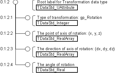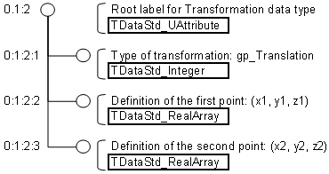 The label itself contains no data. All data of any type whatsoever – application or non-application – is contained in attributes. These are attached to labels, and there are different types for different types of data. OCAF provides many ready-to-use standard attributes such as integer, real, constraint, axis and plane. There are also attributes for topological naming, functions and visualization. Each type of attribute is identified by a GUID.