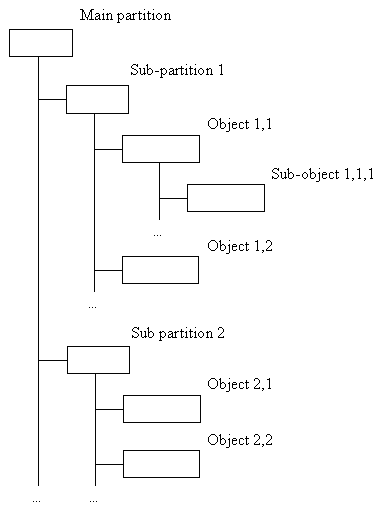 The special kind of objects defined by the class TObj_Partition (and its descendant TObj_HiddenPartition) is provided for partitioning the model into a hierarchical structure. This object represents the container of other objects. Each TObj model contains the main partition that is placed in the same OCAF label as the model object, and serves as a root of the object's tree. A hidden partition is a simple partition with a predefined hidden flag.
