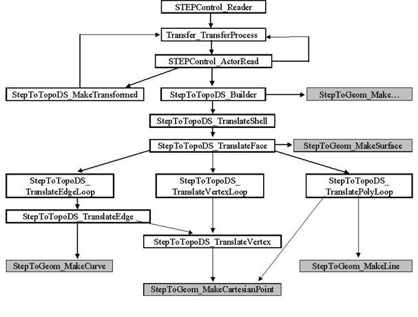 The first part of this document describes the basic STEP translator implementing translation of the first level, i.e. translation to OCCT Shapes. On this level, the acyclic graph representing the assembly structure in a STEP file is mapped into the structure of nested TopoDS_Compounds in Open CASCADE Technology. The (sub)assemblies become (sub)compounds containing shapes which are the results of translating components of that (sub)assembly. The sharing of components of assemblies is preserved as Open CASCADE Technology sharing of subshapes in compounds.