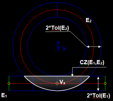 For an edge Ei (with the corresponding 3D curve Ci) and a face Fj (with the corresponding 3D surface Sj) there are some places in 3D space, where the distance between Ci and surface Sj is less than (or equal to) the sum of tolerances of edge Ei and face Fj.
