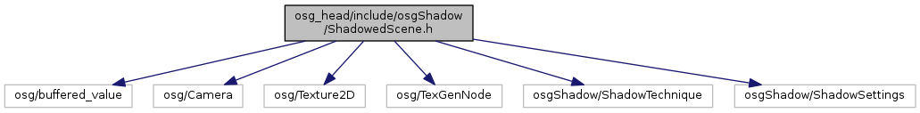 #include <osg/buffered_value>#include <osg/Camera>#include <osg/Texture2D>#include <osg/TexGenNode>#include <osgShadow/ShadowTechnique>#include <osgShadow/ShadowSettings>