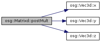 | Vec3d | postMult (const Vec3d &v) const |