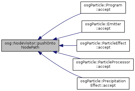 Method called by osg::Node::accept() method before a call to the NodeVisitor::apply(..). The back of the list will, therefore, be the current node being visited inside the apply(..), and the rest of the list will be the parental sequence of nodes from the top most node applied down the graph to the current node. Note, the user does not typically call pushNodeOnPath() as it will be called automatically by the Node::accept() method.