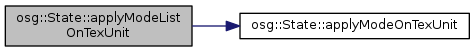 | void | applyModeListOnTexUnit (unsigned int unit, ModeMap &modeMap, const StateSet::ModeList &modeList) |