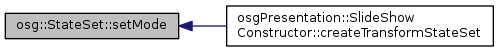 | void osg::StateSet::setMode | ( | StateAttribute::GLMode | mode, |