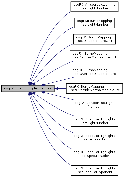 The base class for special effects. An effect is basically a collection of state attributes and an interface for configuring them in a predefined fashion. The Effect class does more however, as it handles multipass rendering transparently and it allows more than one "technique" to be defined. Each technique tries to implement the effect in a different way, often using different OpenGL extensions. The active technique can be selected either manually, with selectTechnique(), or automatically, in which case the first technique that is supported by all active rendering contexts is chosen. If you are an Effect user, then simply use it as a node group. Create an instance of your desired effect, add it to your scene graph and call its addChild() method to add a child node as you would do with a Group. If you are an Effect developer, you will have to implement the method define_techniques() to define the different techniques that can be used for obtaining the desired effect. In define_techniques() you will usually create one or more instances of custom classes derived from Technique and you will add them to the effect with addTechnique(). The order is important: techniques added first will have higher priority and will be used first as soon as all rendering contexts support it.