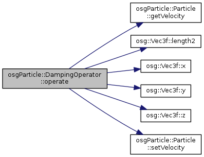 A damping operator applies damping constant to particle's velocity. Refer to David McAllister's Particle System API (http://www.particlesystems.org)