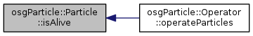 Update the particle (don't call this method manually). This method is called automatically by ParticleSystem::update(); it updates the graphical properties of the particle for the current time, checks whether the particle is still alive, and then updates its position by computing P = P + V * dt (where P is the position and V is the velocity).