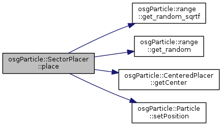 A sector-shaped particle placer. This placer sets the initial position of incoming particle by choosing a random position within a circular sector; this sector is defined by three parameters: a center point, which is inherited directly from osgParticle::CenteredPlacer, a range of values for radius, and a range of values for the central angle (sometimes called phi).