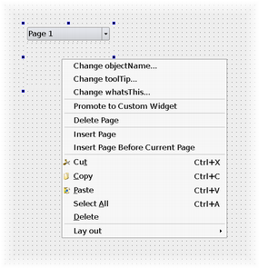 class MyContainerExtension : public QObject, public QDesignerContainerExtension { Q_OBJECT Q_INTERFACES(QDesignerContainerExtension) public: MyContainerExtension(MyCustomWidget *widget, QObject *parent = 0); int count() const; QWidget *widget(int index) const; int currentIndex() const; void setCurrentIndex(int index); void addWidget(QWidget *widget); void insertWidget(int index, QWidget *widget); void remove(int index); private: MyCustomWidget *myWidget; };