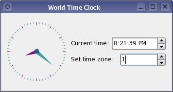 The form loader ensures that all the signal and slot connections between objects in the form are set up correctly when the form is loaded. As a result, the time is updated by the World Time Clock widget, and the time zone spin box can be used to change the position of the hour hand.