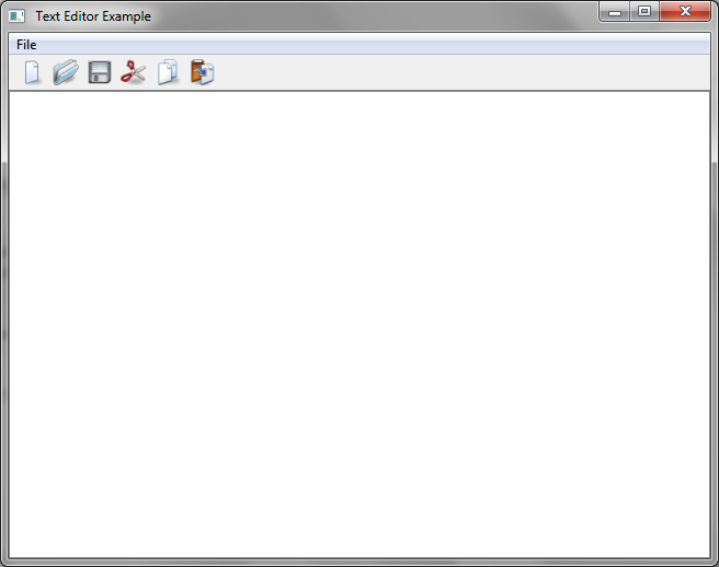 Our application has a simple layout, which consists of a tool bar and a text area. The tool bar contains the tool buttons that the user can choose to manipulate the text area contents. At the top, there are menus, which perform actions such as saving and opening files to edit.