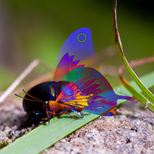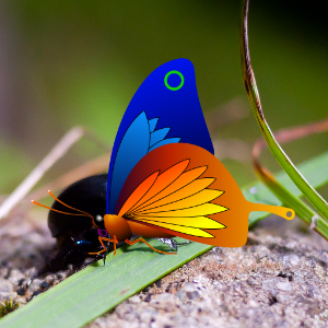 import QtQuick 2.0 import QtGraphicalEffects 1.0 Item { width: 300 height: 300 Image { id: bug source: "images/bug.jpg" sourceSize: Qt.size(parent.width, parent.height) smooth: true visible: false } Image { id: butterfly source: "images/butterfly.png" sourceSize: Qt.size(parent.width, parent.height) smooth: true visible: false } Blend { anchors.fill: bug source: bug foregroundSource: butterfly mode: "subtract" } }