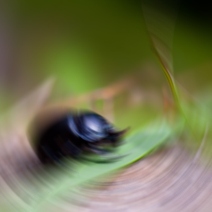 Effect creates perceived impression that the source item appears to be rotating to the direction of the blur.