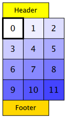 These properties can be combined to produce a variety of layouts, as shown in the table below. The GridViews in the first row all have a flow value of GridView.FlowLeftToRight, but use different combinations of horizontal and vertical layout directions (specified by layoutDirection and verticalLayoutDirection respectively). Similarly, the GridViews in the second row below all have a flow value of GridView.FlowTopToBottom, but use different combinations of horizontal and vertical layout directions to lay out their items in different ways.