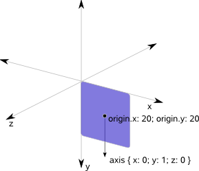 The axis to rotate around. For simple (2D) rotation around a point, you do not need to specify an axis, as the default axis is the z axis (axis { x: 0; y: 0; z: 1 }).