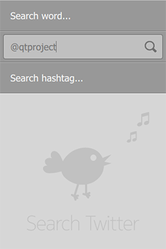 Tweet Search is a QML application that searches items posted to Twitter service using a number of query parameters. Search can be done for tweets from a specified user, a hashtag, or a search phrase.