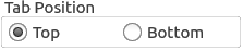 GroupBox { title: "Tab Position" RowLayout { ExclusiveGroup { id: tabPositionGroup } RadioButton { text: "Top" checked: true exclusiveGroup: tabPositionGroup } RadioButton { text: "Bottom" exclusiveGroup: tabPositionGroup } } }