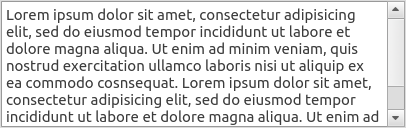 TextArea { width: 240 text: "Lorem ipsum dolor sit amet, consectetur adipisicing elit, " + "sed do eiusmod tempor incididunt ut labore et dolore magna " + "aliqua. Ut enim ad minim veniam, quis nostrud exercitation " + "ullamco laboris nisi ut aliquip ex ea commodo cosnsequat. "; }