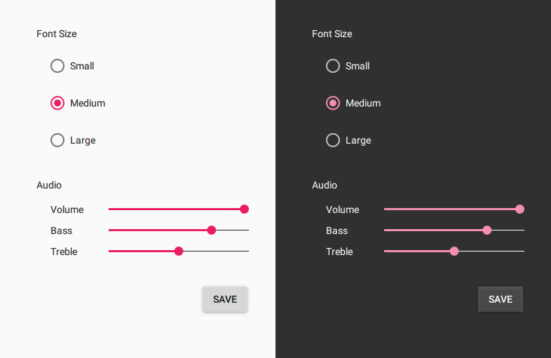 Note: Even though the accent can be any color, it is recommended to use one of the pre-defined Material colors that have been designed to work well with the rest of the Material style palette.