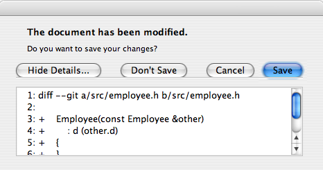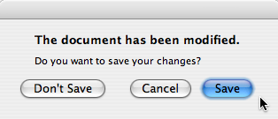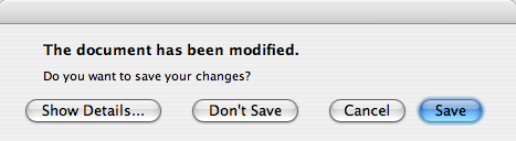A better approach than just alerting the user to an event is to also ask the user what to do about it. Store the question in the informative text property, and set the standard buttons property to the set of buttons you want as the set of user responses. The buttons are specified by combining values from StandardButtons using the bitwise OR operator. The display order for the buttons is platform-dependent. For example, on Windows, Save is displayed to the left of Cancel, whereas on Mac OS, the order is reversed.