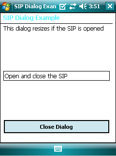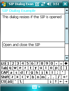 Sometimes it is necessary for a dialog to take the SIP into account, as the SIP may hide important input widgets. The SIP Dialog Example shows how a Dialog object, dialog, can be resized accordingly if the SIP is opened, by embedding the contents of dialog in a QScrollArea.
