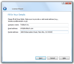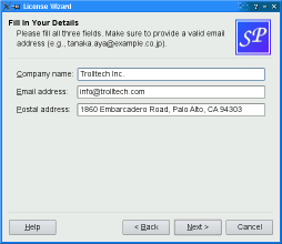 QWizardPage *createIntroPage() { QWizardPage *page = new QWizardPage; page->setTitle("Introduction"); QLabel *label = new QLabel("This wizard will help you register your copy " "of Super Product Two."); label->setWordWrap(true); QVBoxLayout *layout = new QVBoxLayout; layout->addWidget(label); page->setLayout(layout); return page; } QWizardPage *createRegistrationPage() { ... } QWizardPage *createConclusionPage() { ... } int main(int argc, char *argv[]) { QApplication app(argc, argv); #ifndef QT_NO_TRANSLATION QString translatorFileName = QLatin1String("qt_"); translatorFileName += QLocale::system().name(); QTranslator *translator = new QTranslator(&app); if (translator->load(translatorFileName, QLibraryInfo::location(QLibraryInfo::TranslationsPath))) app.installTranslator(translator); #endif QWizard wizard; wizard.addPage(createIntroPage()); wizard.addPage(createRegistrationPage()); wizard.addPage(createConclusionPage()); wizard.setWindowTitle("Trivial Wizard"); wizard.show(); return app.exec(); }