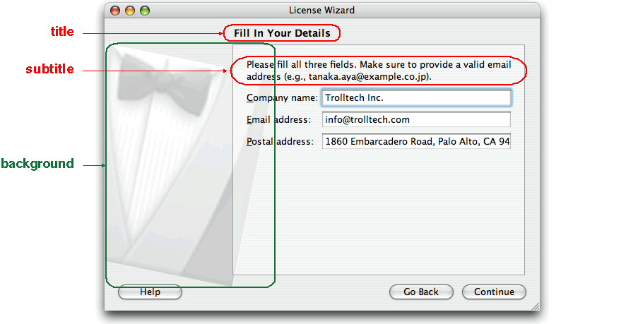 A wizard (also called an assistant on macOS) is a special type of input dialog that consists of a sequence of pages. A wizard's purpose is to guide the user through a process step by step. Wizards are useful for complex or infrequent tasks that users may find difficult to learn.